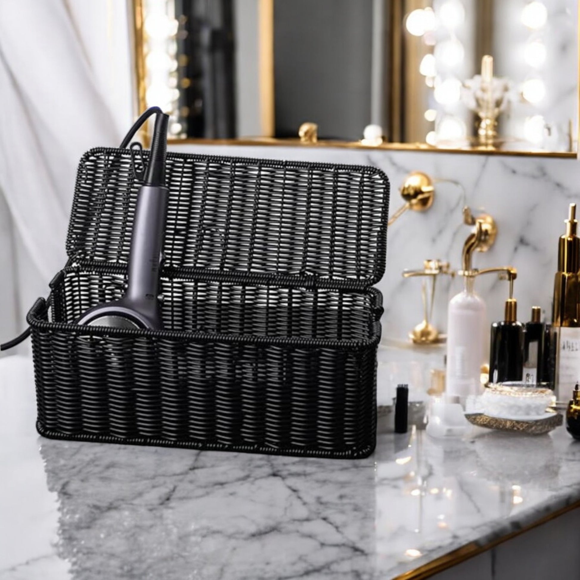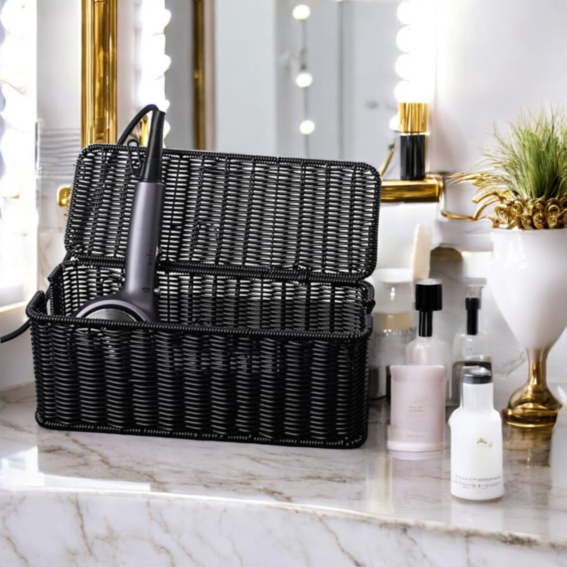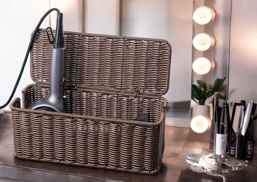 Caja de gestión de cables, Caja organizadora de cables hecha a Mano de Ratán Sintético