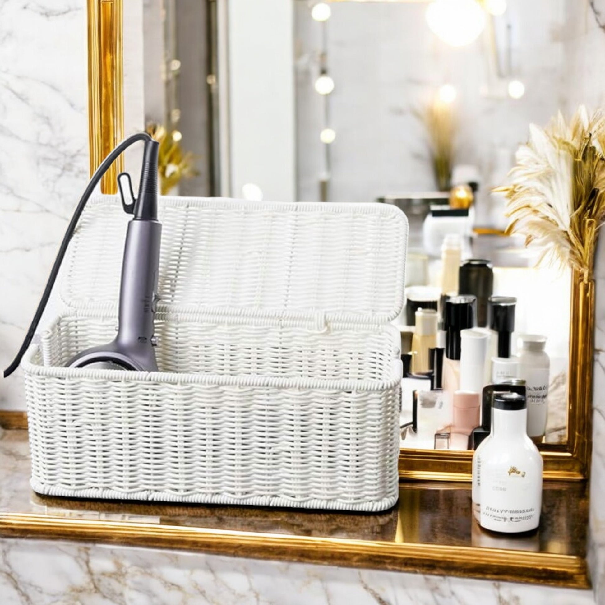 Es un lindo diseño hecho a Mano entretejido elaborado con ratán sintético (PP) de calidad, está caja organizadora imita el aspecto del ratán real al tiempo que ofrece mayor durabilidad.
